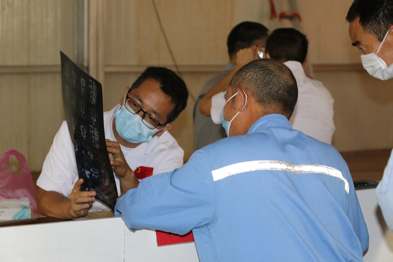 During the free clinical treatment, the doctors of the medical team made careful physical examination for every employee and patiently answered their questions, offered proper diagnosis and treatment suggestions and therapies, distributed drugs, and gave acupuncture treatment to some of the employees. Their efforts were unanimously praised by the project team members.