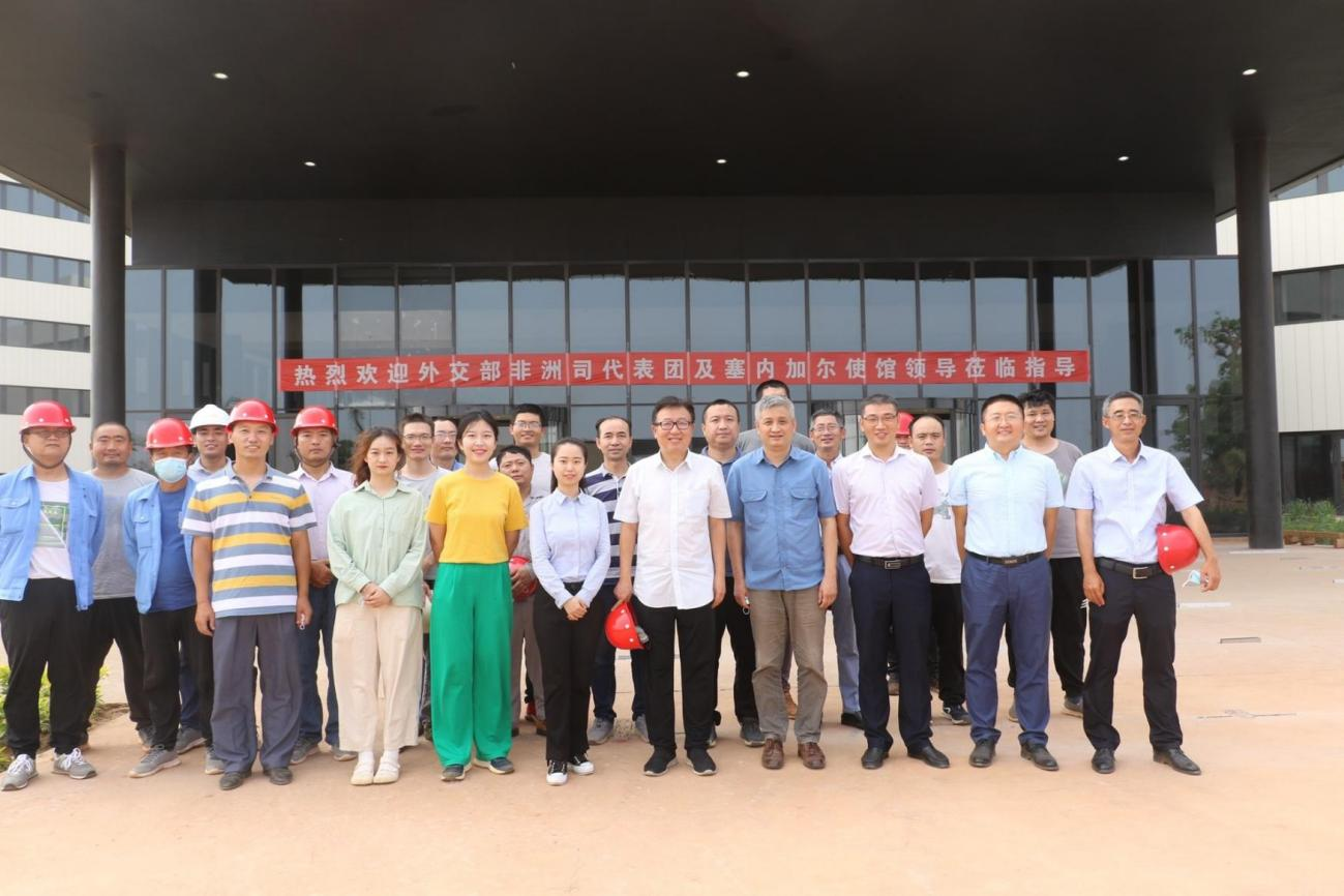 After the visit, Director-General Wu, Ambassador Xiao and the delegation took a group photo with all the accompanying staff and extended cordial sympathy to all the employees of the company who have stuck to their posts in the epidemic situation. The project members said that they would work in the unswerving way and successfully complete the construction of the UN Office Building Project in Senegal so as to win glory for the motherland.