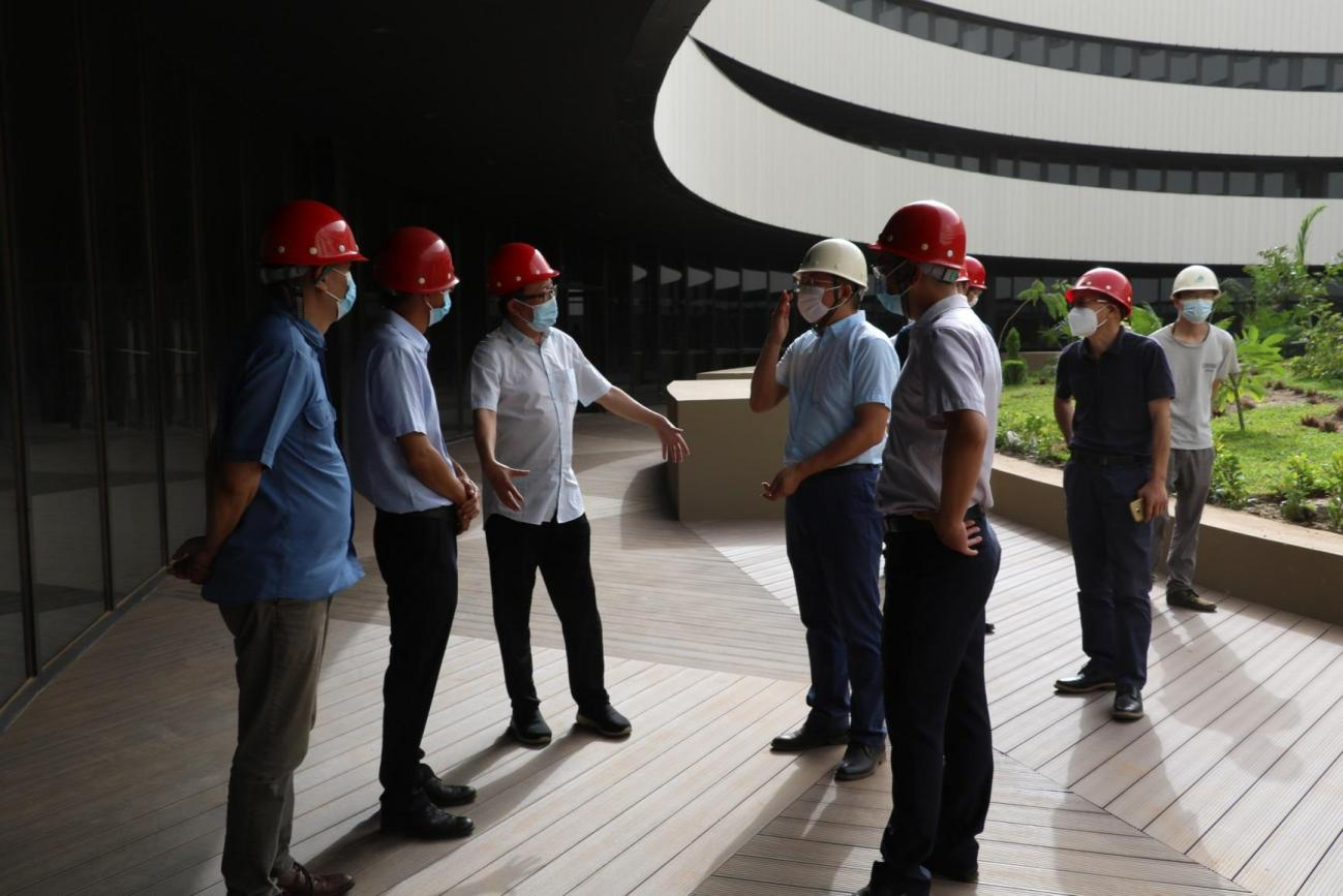 Le Directeur WU et l'Ambassadeur XIAO ont visité le hall d'entrée du batiment principal, la salle de conférence circulaire souterraine, le couloir de l'anneau intérieur, le bureau de trois étages et le paysage extérieur, et a écouté le compte-rendu sur l'échelle, le progrès et les autres situations, etc. du projet. Dans le couloir de l'anneau intérieur, le Directeur WU s'est concentré sur la compréhension des pratiques d'étanchéité de la toiture des paysages autour de la salle de conférence circulaire et a accordé une haute appréciation aux mesures strictes de contr?le de la qualité de la construction de la société.