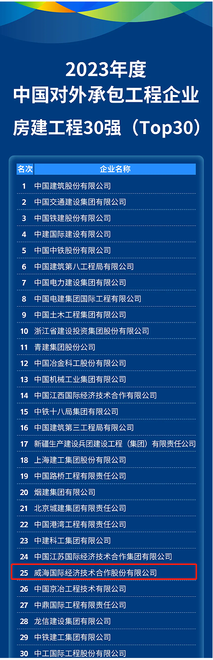 5月7日、2024対外請(qǐng)負(fù)工事業(yè)界発展大會(huì)の開催期間中、中國(guó)対外請(qǐng)負(fù)工事商會(huì)は2023年度中國(guó)対外請(qǐng)負(fù)工事企業(yè)に関する複數(shù)のランキングを発表した。會(huì)社は中國(guó)対外請(qǐng)負(fù)工事企業(yè)ベスト100選(65位)、住宅建設(shè)工事ベスト30選(25位)、アフリカ地區(qū)事業(yè)ベスト30選(25位)に選ばれ、會(huì)社の成長(zhǎng)続く海外発展力を改めて體現(xiàn)した。