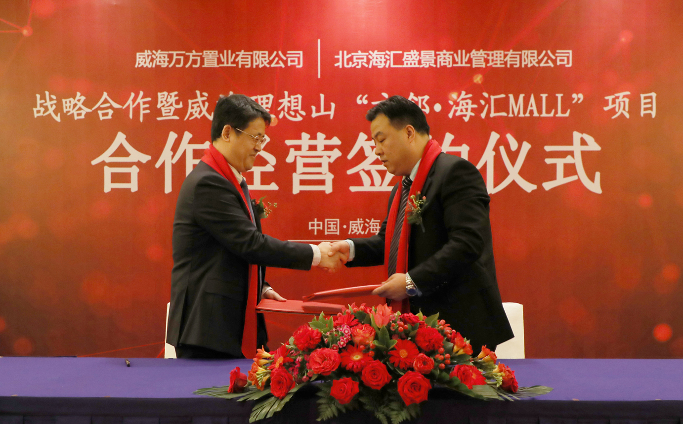 晴綠乍添垂柳色,春流時泛落花香。2月28日上午,在暖陽高照春回大地之際,“威海萬方置業(yè)有限公司與北京海匯盛景商業(yè)管理有限公司戰(zhàn)略合作協(xié)議暨理想山方鄰·海匯MALL合作經(jīng)營簽約儀式”于威海海悅建國飯店隆重舉行。這標(biāo)志著威海理想山H1商業(yè)項目正式啟動。