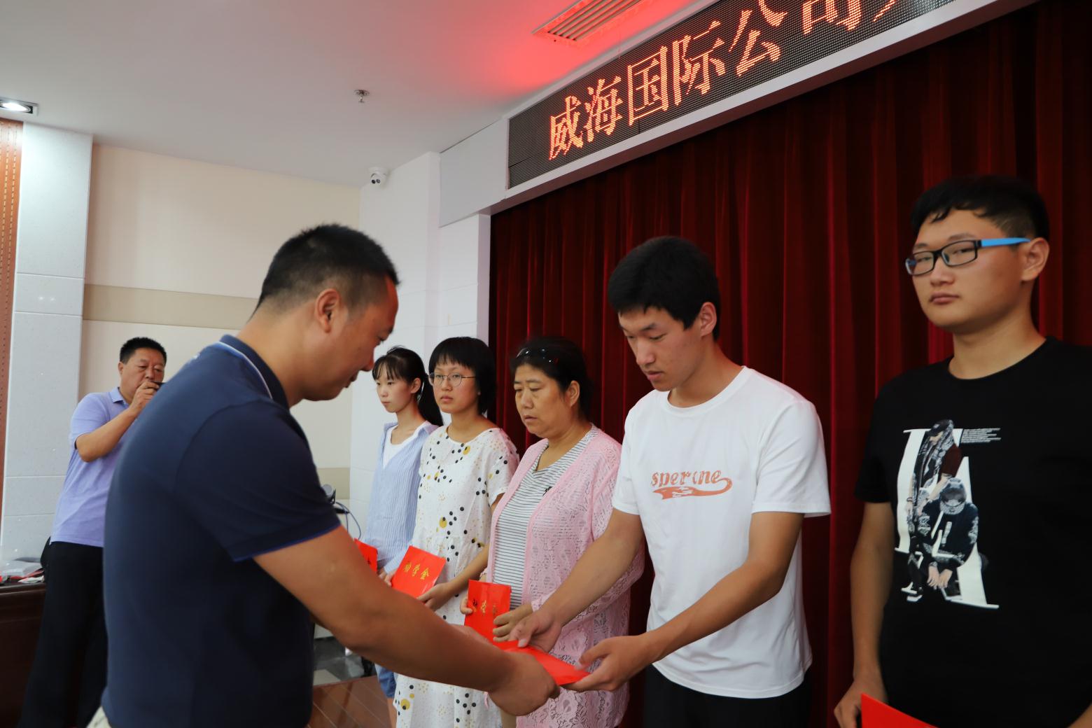 近日,“威海國際慈善愛心基金”助學(xué)儀式在威海市民政局會議室舉行。威海市慈善總會副秘書長王明源、公司人力資源總監(jiān)王慷慨向9名受助大學(xué)生發(fā)放了助學(xué)金。