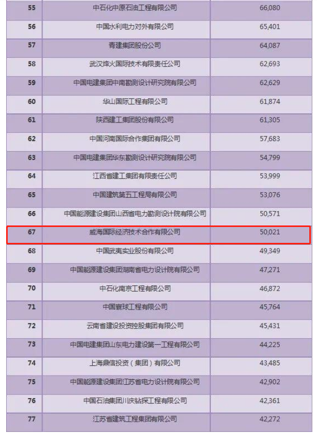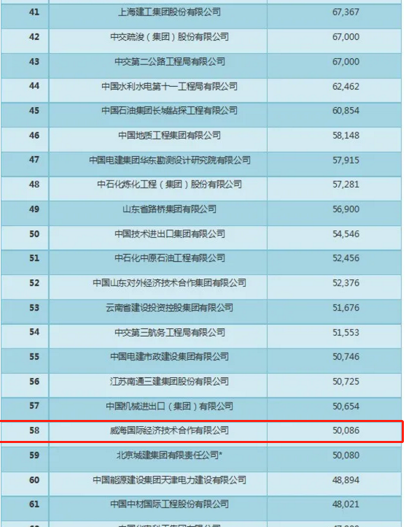 近日,商務(wù)部發(fā)布了2020年中國(guó)對(duì)外承包工程業(yè)務(wù)完成營(yíng)業(yè)額和新簽合同額的100強(qiáng)榜單,我公司分別位居第58名和67名。入圍兩項(xiàng)對(duì)外承包工程百?gòu)?qiáng)企業(yè)名單,充分顯示了公司在艱難形勢(shì)下的韌性和良好的發(fā)展態(tài)勢(shì),同時(shí)對(duì)提升“威海國(guó)際”品牌的影響力和推動(dòng)業(yè)務(wù)的開(kāi)展具有積極意義。